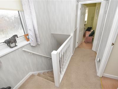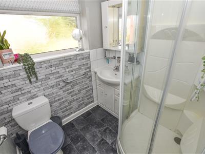 Making your way upstairs, the landing provides access to principle rooms and built in cupboard. 3 bedrooms in total with two doubles and one single with a 3 piece white bathroom which includes a corner shower, wash basin and WC.