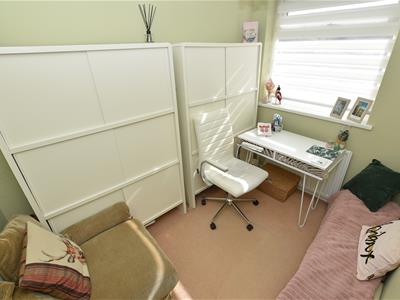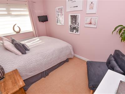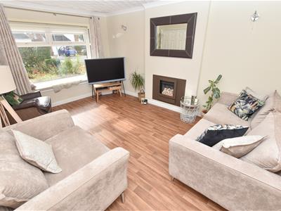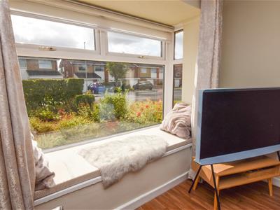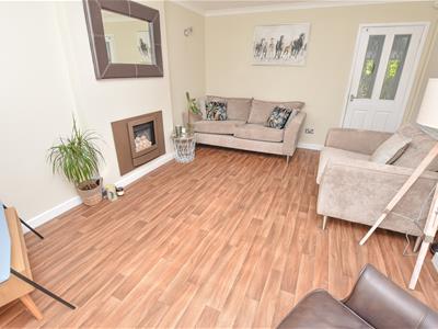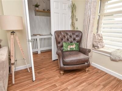 A well proportioned lounge with bow bay window positioned to the front, enjoying the aspect to the front, raised inset fire and connecting door into the dining kitchen.