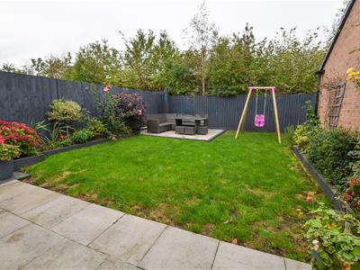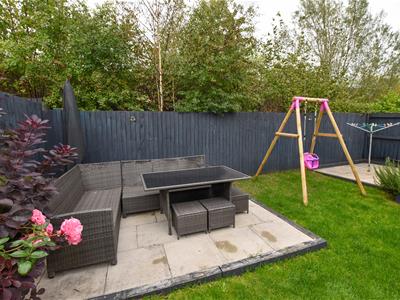 Private gardens to the rear with patio area to the immediate rear leading to the lawn with raised planters, additional seating and paved area to the rear of the garage, fence boundaries and gated access to the side where you find the detached garage with up and over door.