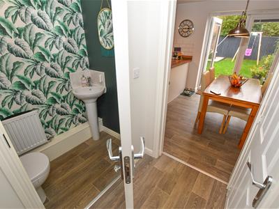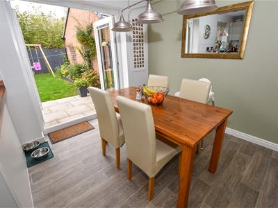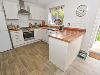From here the hallway provides access to principal rooms with the well proportioned lounge on the left, downstairs WC and turned staircase to the the first floor on the right. Whilst to the rear you will find the dining kitchen which spans the full width of the property with the dining area on the right with French doors opening onto the garden.