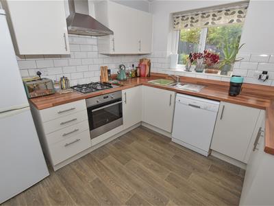 On the left, you will find the kitchen which offers a range of wall and base units finished in white with complimentary worktops, space for appliances with aspect to the rear. Connecting door into the utility room with plumbing for appliances, further cupboard space and wall mounted boiler with door to the side.