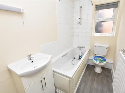 You will also find the white bathroom (on the ground floor) having a bath with shower above, wash basin and WC.