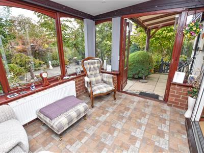 Making your way into the living space where the property presents flexibility. On the left, a well proportioned lounge with central fireplace and patio doors leading into the conservatory which overlooks the garden with French doors on the right.