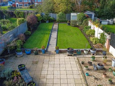 Making your way outside you will find a paved patio area to the immediate rear, whilst the majority is laid to lawn with planted borders, fence boundaries and mature aspect to the rear. Access to garage and shed.