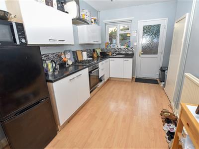 The breakfast kitchen can be found on the left hand side of the hallway and offers a range of wall and base units finished in white complimentary work top, space for appliances, under stairs store and wall mounted boiler. Aspect and door opening onto the the garden.