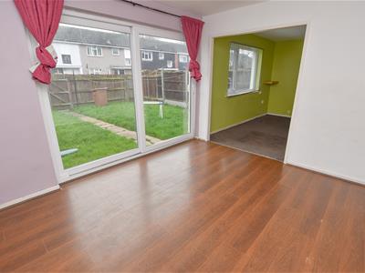 The kitchen offers a range of wall and base units with space for appliances, concealed wall mounted boiler and aspect over the front. The reception space spans the full width of the property with divide which provides both lounge and dining areas enjoying the aspect over the rear garden with patio doors.