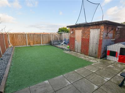 The USP for this property is the rear aspect... the low maintenance with patio area, astro turf lawn, outbuildings and and open aspect to the rear over playing fields. A viewing is strongly advised...