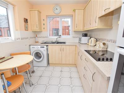 A bright well proportioned reception room enjoying the dual aspect to the front and side allowing natural light to pour with connecting door into the kitchen. Here you have a range of wall and base units with complimentary worktops including space for appliances and plumbing for washing machine with tiled walls and aspect to the rear.