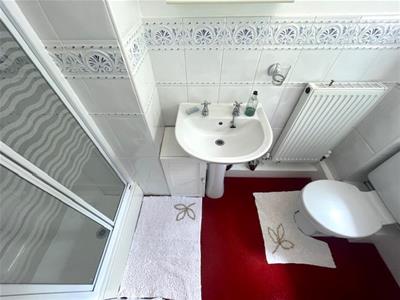 1.93m (to front of shower cubicle) x 1.04m (6'3" (Shower with folding shower door, W/C, sink and pedestal, part tiled walls, fitted carpet and opaque UPVC double glazed window to rear.