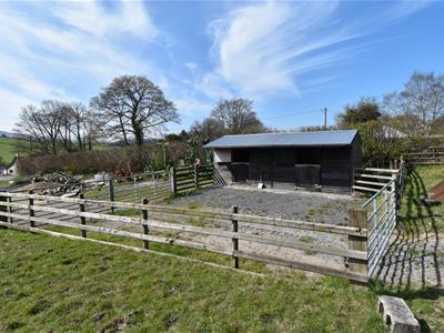 The paddock benefits from gate access from the bungalow and gardens but also from a separate road access close to the junction with the main Wrexham to Ruthin road. It has a long driveway in with a wide double gate entrance leading to a hard core drive which extends up to an enclosure with two timber framed and panelled stables (approximately 10' x 10'), both with kicking boards and light panels.
