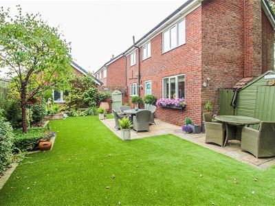 To the front of the property is an attractive artificial lawned garden with paved pathway leading to the entrance door. There is a driveway which leads to a brick built single garage with roller door. To the rear is a particularly attractive and private garden with paved patio seating area, artificial lawn, a range of mature beds and borders, useful shed for storage and gate leading round to the front surrounded by fencing and walls.