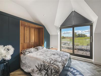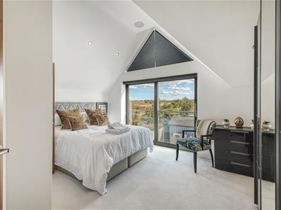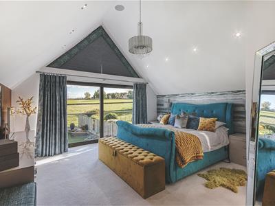 9.83 x 4.62 (32'3" x 15'1")With a feature high ceiling, generous walk-in wardrobe and sliding patio door incorporating Juliet balcony offering fabulous views over the garden and fields beyond.