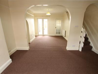 6.872 4.421 at widest (22'6" 14'6" at widest)Three radiators, stairs to first floor and door into kitchen. There is also patio doors into the rear garden.
