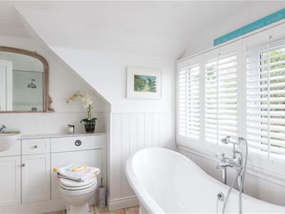 The fourth and final bedroom sits at the end of the first-floor hallway, filled with natural light from a large Velux and two additional windows ,which do have plantation shutters attached, that brighten the space beautifully. This cosy bedroom comfortably accommodates a double bed along with ample space for storage.