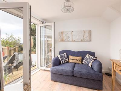 This triple aspect living room - with bifold doors leading out to the decking, is the perfect place to sit and unwind whilst taking in the beautiful sea views. This room makes the absolute best of American style indoor/outdoor living.