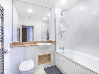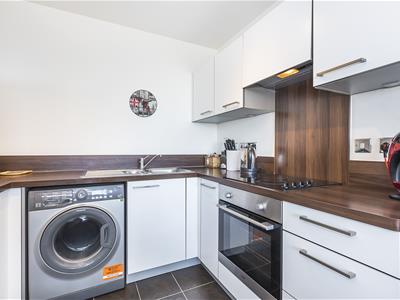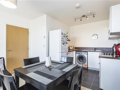 The flat has an open plan kitchen/diner/lounge, with access to a generous private balcony. The kitchen area has a range of smart, modern fitted units and work surfaces, whilst the full height window and glazed door in the lounge ensure plenty of natural light. There is also a solid double bedroom and a three piece bathroom with shower over the bath.