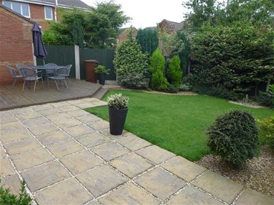 The rear garden is enclosed by panelled fencing and mature shrubs and borders with professionally landscaped lawn and raised decked terrace