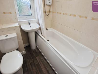 1.82m x 1.71m (5'11" x 5'7")Having white sanitary ware with shower to bath and tiling.