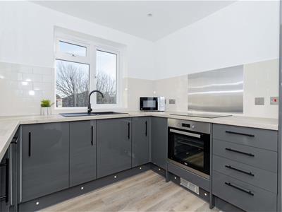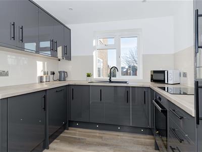 2.79m x 2.74m (9'2 x 9)A range of matching high gloss wall and base units. Roll worktop incorporating a stainless steel sink with mixer tap and drainer. Built in oven. Four ring hob with stainless steel splashbacks. Integrated fridge/freezer, washing machine and dishwasher. Part tiled walls. Spotlights. Double-glazed window with rear aspect.