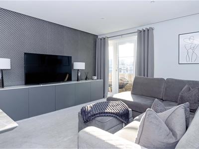 5.31m x 3.86m (17'5 x 12'8)Double-glazed window to front and side aspects enjoying lovely open roof top views across the town. Electric radiator. TV point. Feature suspended ceiling with LED mood lights. Spotlights. Door leading to balcony.