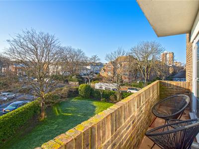 South facing balcony. Space for table and chairs, enjoying open views over the gardens.
