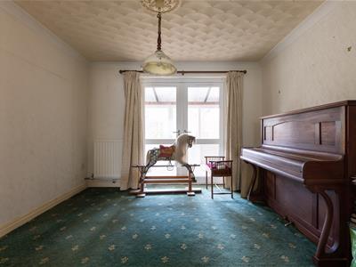 3.25m x 3.15m (10'8" x 10'4")Double glazed French doors to Conservatory, ceiling cornices, radiator.