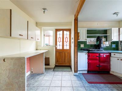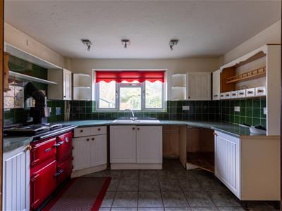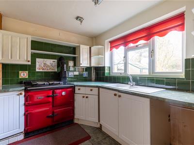 5.03m x 2.79m (16'6" x 9'2")Propane gas fired Rayburn for cooking, central heating and domestic hot water, plumbing for dishwasher and washing machine, tiled floor, one and half bowl single drainer sink unit with cupboards under, floor standing cupboard and drawer units with worktops, wall cupboards.-