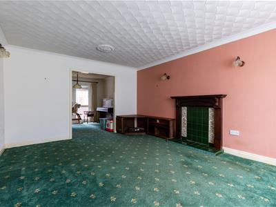 4.88m x 3.68m (16'0" x 12'1")Timber fire surround with tiled hearth and inset, ceiling cornices, three single wall lights, radiator, open to Dining Room.