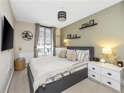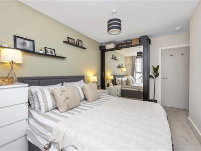4.29 x 3.10 (14'0" x 10'2")Feature floor to ceiling double glazed window to rear aspect. Radiator. TV point. Fitted mirror fronted wardrobe with hanging space and shelving. Skimmed ceiling.
