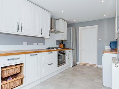 4.64 x 2.60 (15'2" x 8'6")Spotlights. Radiator. Double glazed window and French door. Space for fridge/freezer, washing machine, dishwasher, and tumble dryer. Soft closing white wall, base and draw units with solid oak worktops. Five ring gas hob with overhead extractor fan. Electric oven. Splashback.