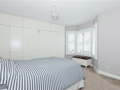 3.81 x 3.61 (12'5" x 11'10")Double glazed bay window with fitted shutters. Fitted wardrobes with shelving and hanging rail. Radiator.